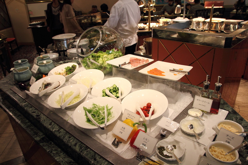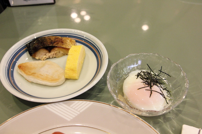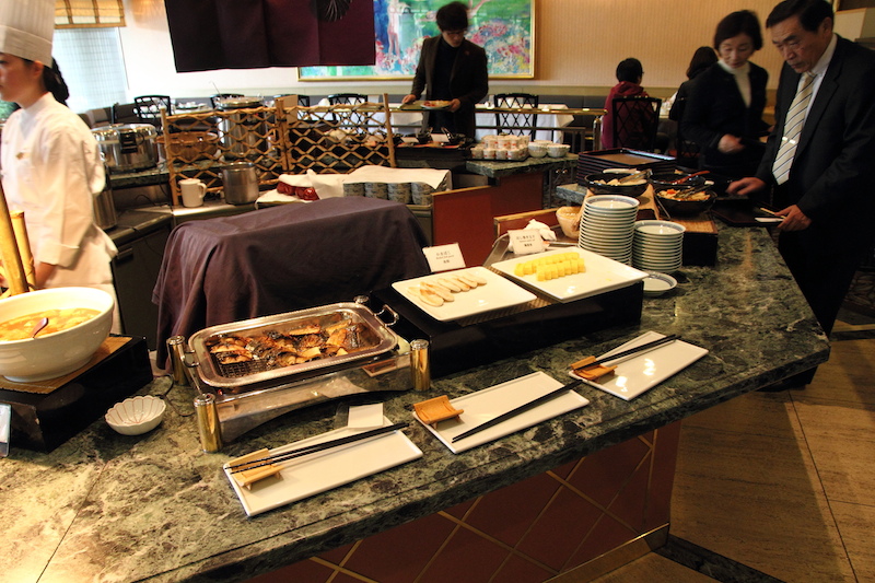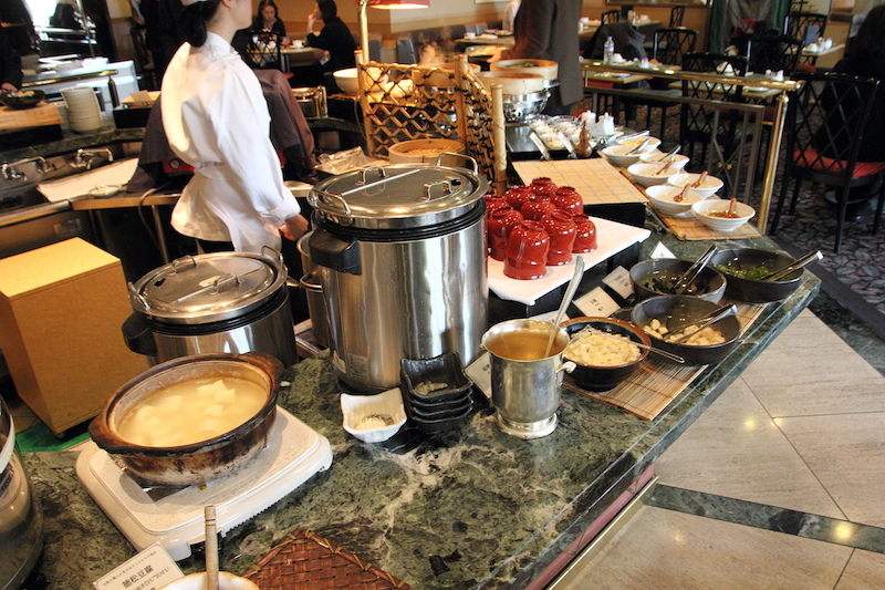 新大谷的自助式早餐非常豐盛,主要分為兩個區塊,一邊是西式早餐;另一邊則是日式早餐。西式早餐就與一般飯店常見的大同小異,以生菜沙拉、麵包、香腸、培根、現作蛋捲為主。日式早餐就比較特別了,有現煮的烏龍麵、清粥以及日式漬物、味噌湯與烤魚等,喜歡吃什麼就看個人選擇了,也可以和洋合併一起吃。不過相較於西式的選擇,日式的早餐算是比較少一些,不過兩邊的餐點都不錯吃。