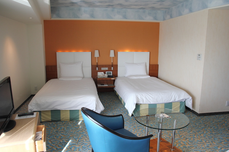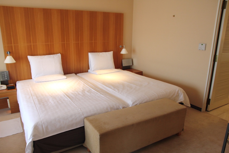 豪華雙人床房有兩張單人床,窗戶採落地窗的設計,因此光照面積十分大,照亮滿室。