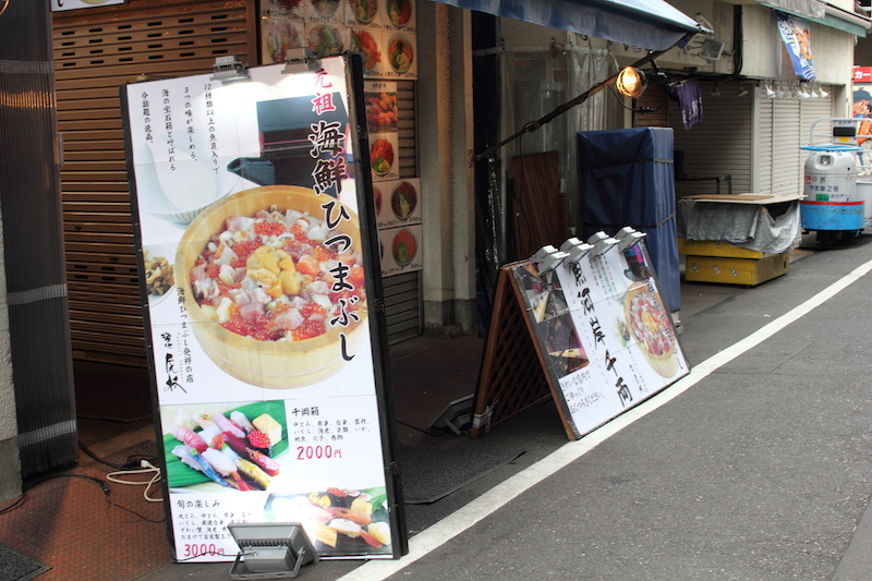 在東京的每一天,早餐幾乎都是來築地市場解決,一早搭車來到築地外市場,走到魚河岸千兩,今天的早餐是要來吃在台灣遊客來築地也常常吃的海鮮木桶飯。